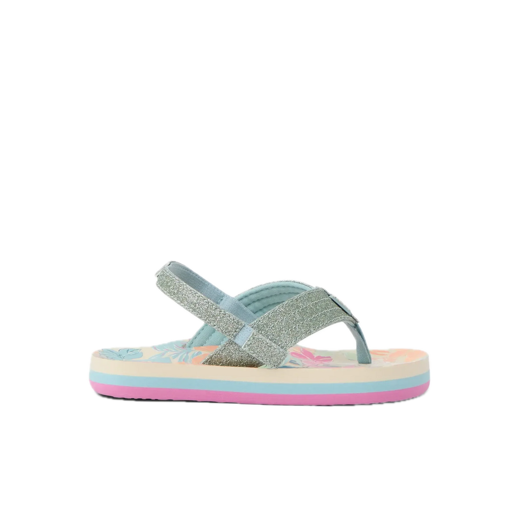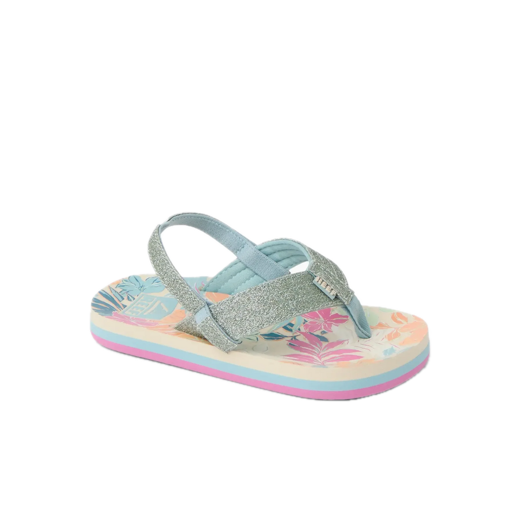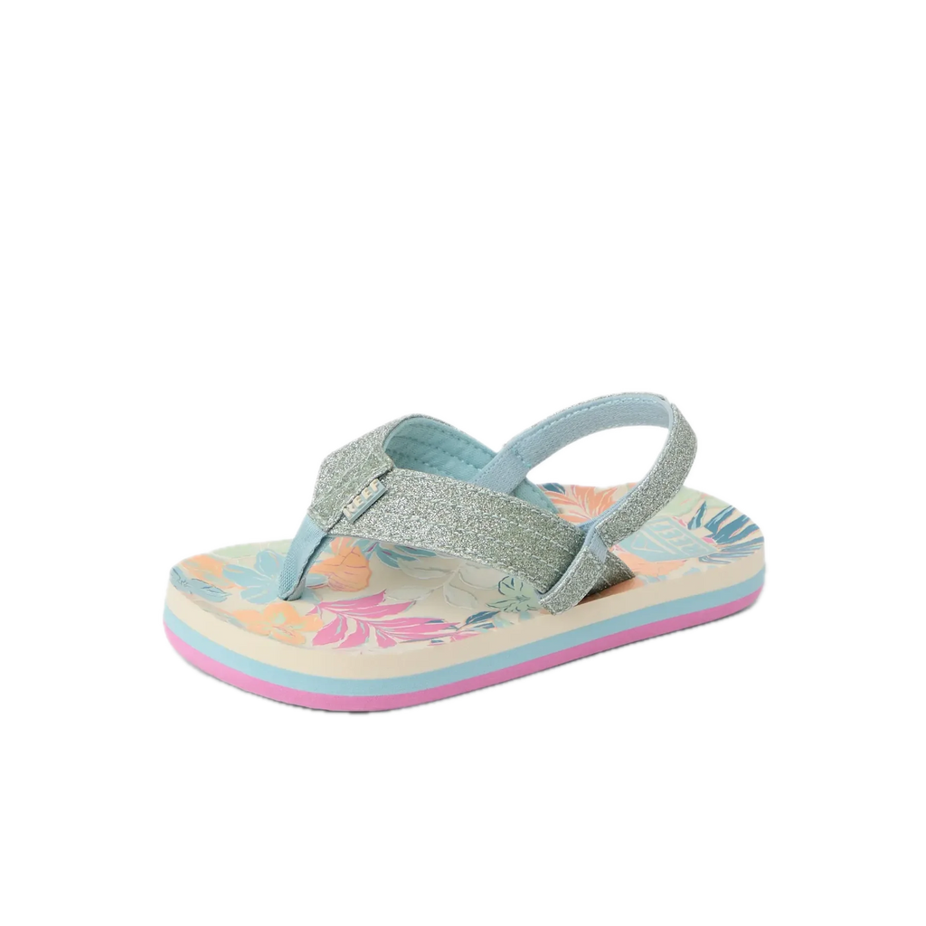 De Little Ahi is de bestverkopende kinderslipper van Reef en dat is niet zonder reden. Watervriendelijke synthetische gewatteerde bandjes met een zachte webbing voering voor extra draagcomfort. Gecontoureerd EVA voetbed met een vrolijk tropisch bloemenpatroon dat het seizoensgevoel direct op de voet zet. Lichtgewicht en duurzame high-density EVA buitenzool. Rugband inbegrepen voor een veilige en stabiele pasvorm, ook bij de actiefste strandkinderen. Tropical Floral is een vrolijk, kleurrijk bloemenprint dat de zomerse sfeer perfect aanvult.