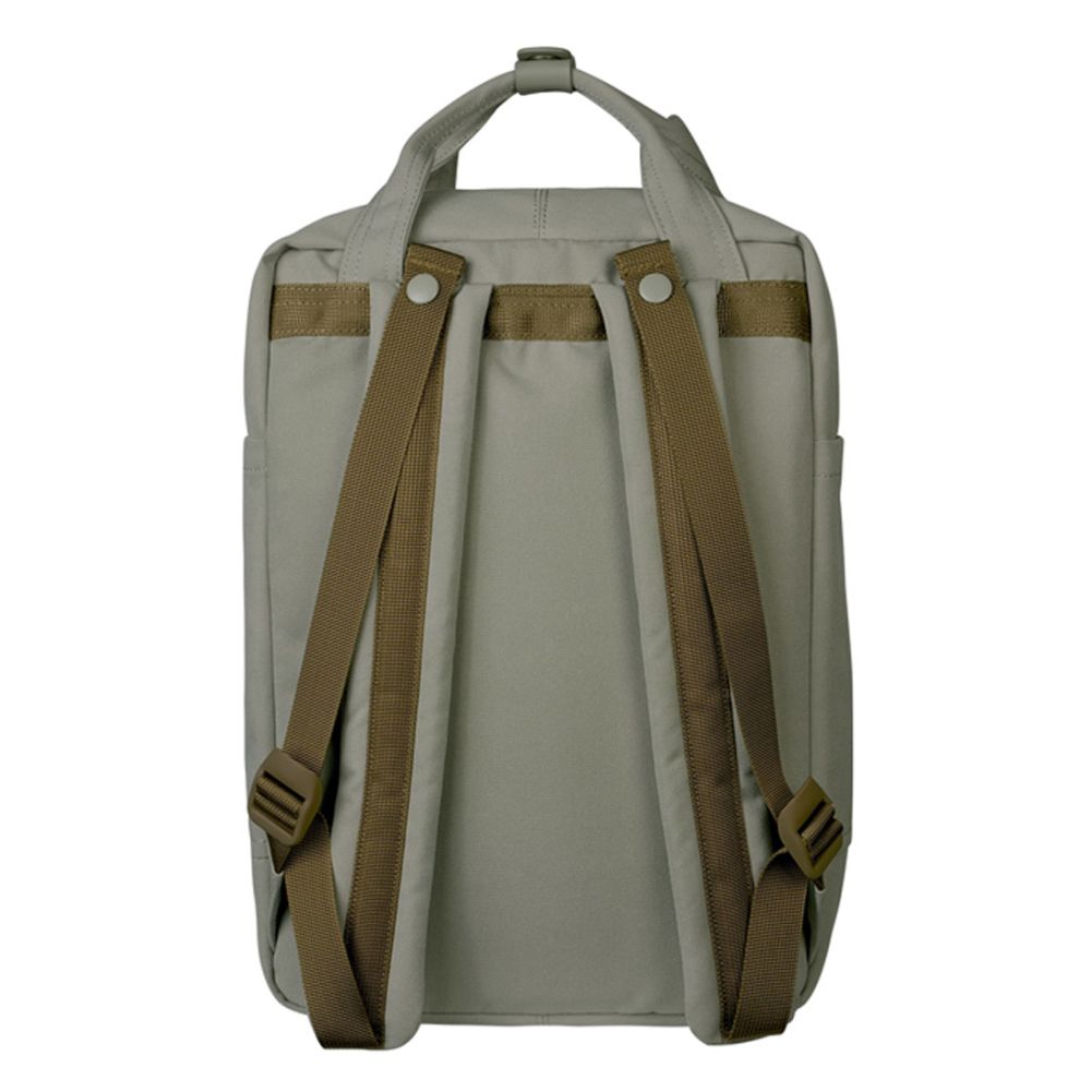 De Macaroon Meditative Dark Backpack is gemaakt van 900D poly canvas met lederen afwerking en een waterafstotende coating. Het klassieke Macaroon silhouet met voorzak, gespsluiting en het herkenbare Doughnut logo label. Hoofdcompartiment met laptopvak tot 14 inch, meerdere organizer vakken en een zijvak voor een fles. Gevoerde verstelbare schouderriemen en een bovenhandvat voor flexibel dragen. Sand is de lichtste kleur in de Meditative Darks serie: een warme, gedempte zandtint die rust uitstraalt zonder in te leveren op karakter.