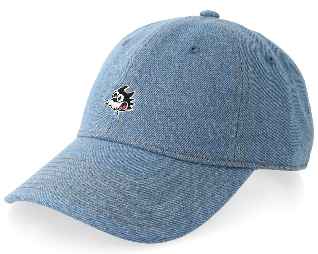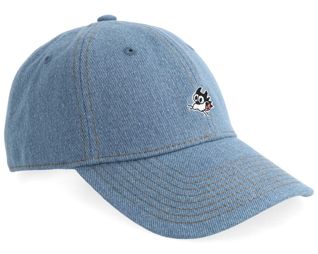 Element Skateboards en Haarlemse illustrator Floor Van Het Nederend brengen samen de Snacks collectie uit, en de Dad Cap is een van de meest subtiele stukken erin. Light blue denim met contrasterende bruine stiknaad en een geborduurd hoofd van Malvin The Cat op de front crown. Klein, maar direct herkenbaar voor iedereen die het werk van Floor kent. Een cap die je draagt zonder iets te hoeven uitleggen.